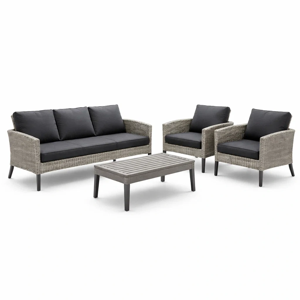 Ensemble de canapés en résine tressée avec coussins gris clair